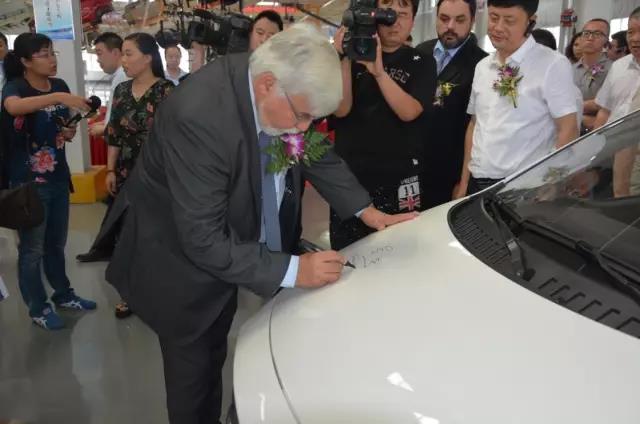乌拉圭内政部长爱德华多·博诺米一行在跃迪YD360车身上签名留念