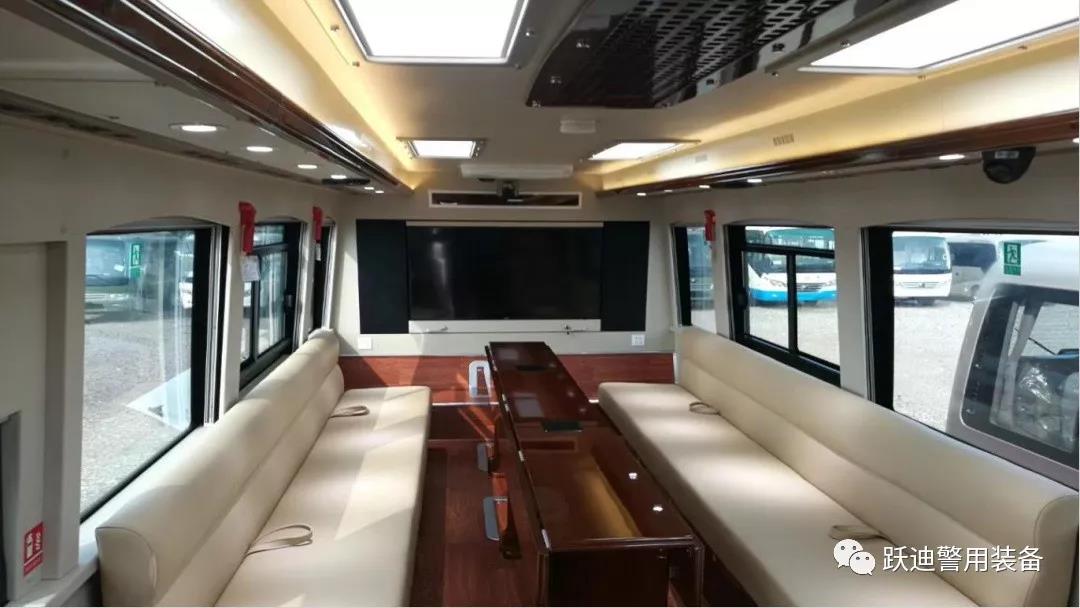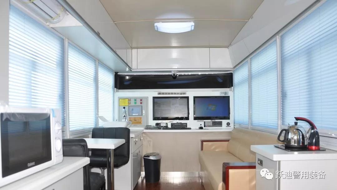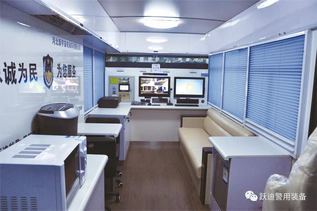 跃迪移动警务室兼具警务车辆和警务办公场所多重功能,内置电脑、警务工作台和无线监控指挥调度系统等先进设备,集移动巡逻、全方位监控、警情处置、宣传咨询及服务群众等功能为一体,堪比“移动派出所”。