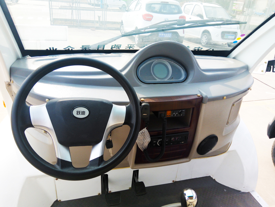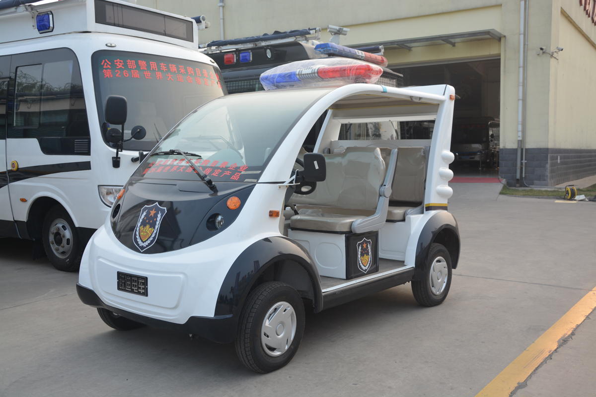 跃迪警用电动巡逻车J5整车采用横向稳定系统微型轿车底盘,增加车辆转弯时的稳定性,使行驶更平稳。具有语音装置,运用蓄电池,是一种高效、节能、低噪音、零排放的绿色执法用车。整车机动灵巧,满足了随时移动执勤的警务模式要求,不仅可以近距离服务群众,还可以及时处置发生在社会上的各种警情和治安问题,有效震慑和打击各类违法犯罪行为。