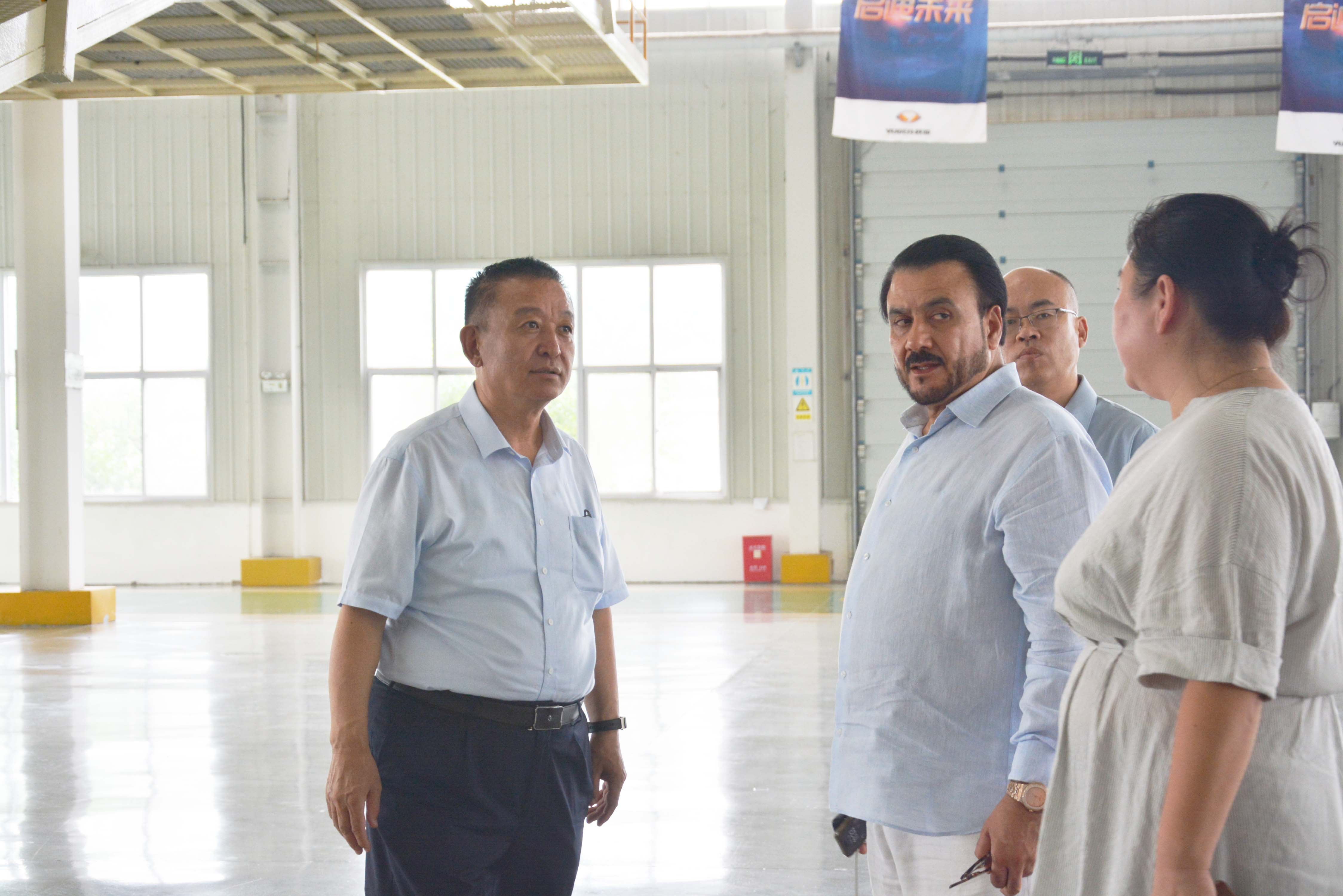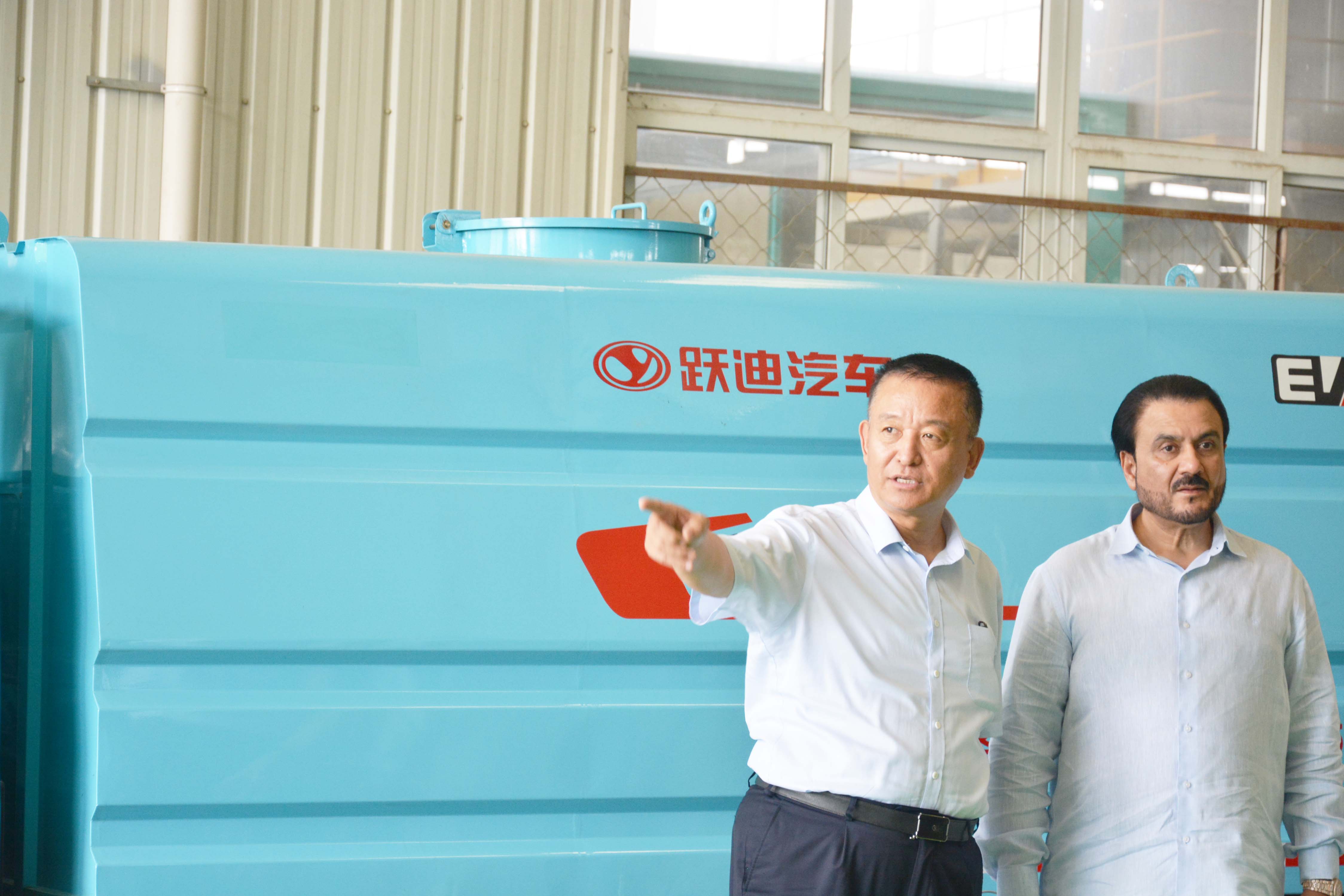 2025年8月15日迪拜客商专程到跃迪调研,在跃迪董事长吕洪涛及公司副总裁崔清学的陪同下,双方围绕新能源汽车、智能出行等领域的合作可能性展开深入交流。