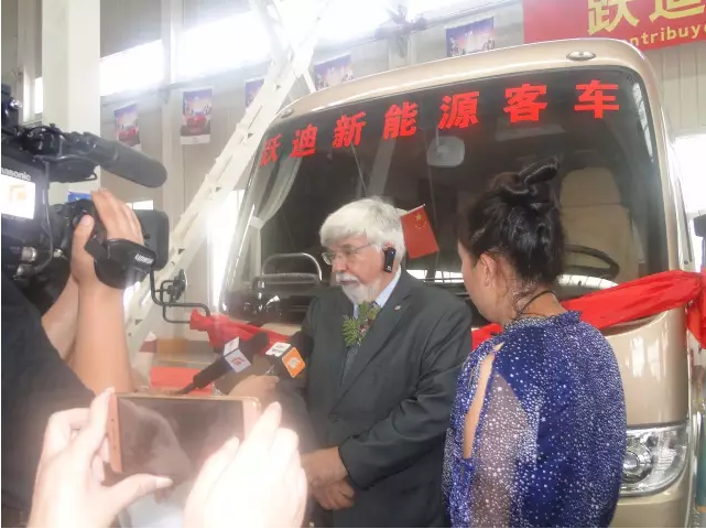 捐赠仪式上跃迪集团董事长吕洪涛率先发言向莅临本次捐赠仪式的中外领导和嘉宾表示由衷的欢迎与感谢,吕洪涛董事长指出,十年砥砺前行,跃迪集团矗立新能源汽车行业潮头。跃迪集团已发展成为大型专业从事新能源汽车研发、生产和销售的现代化国家企业。集团目前拥有河北新宇宙电动车有限公司、河北聚乾电动车有限公司、陕西跃迪新能源汽车有限公司、安庆安达尔汽车制造有限公司四大生产基地,拥有集汽车冲压、焊接、涂装、总装和综合检测为一体的现代化汽车生产线,产品涉及纯电动汽车、纯电动客车、电动公交车、纯电动物流车、移动警务室、警用巡逻车、电动场地车和电动叉车等13大系列,50余种产品。拥有专利100余项,被评为国家企业。有关技术和产品相继被评为“河北省工业设计金奖”、“技术卓越奖”、“2015年度全国政府采购新能源车典范车型奖”、“2016年度全国政府采购行政执法新典范车型奖”。跃迪集团连续八年入选公安部公安警用车辆采购目录企业、全国公安系统警用装备十佳品牌等,这些成就的取得离不开省委、省政府的正确带领、石家庄市委、市政府和元氏县县委、县政府的具体指导。