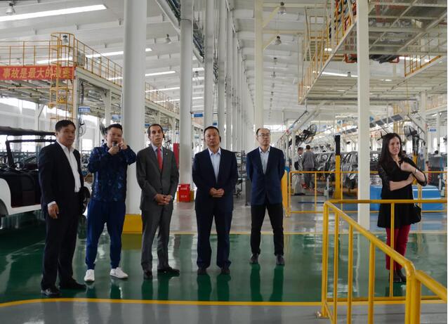 座谈结束后,集团领导陪同市长Felipe Alessandri一行,先后深入到跃迪集团现代化的汽车生产线、车辆展厅参观考察,了解集团的发展现状和产品优势。Felipe Alessandri一行试乘试驾了跃迪电动汽车、跃迪警务用车等系列车型,体验了跃迪汽车优越的产品性能。