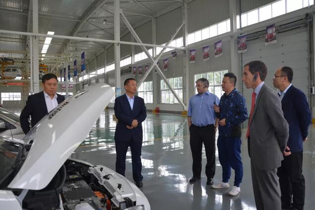 集团领导向Felipe Alessandri一行介绍跃迪电动汽车