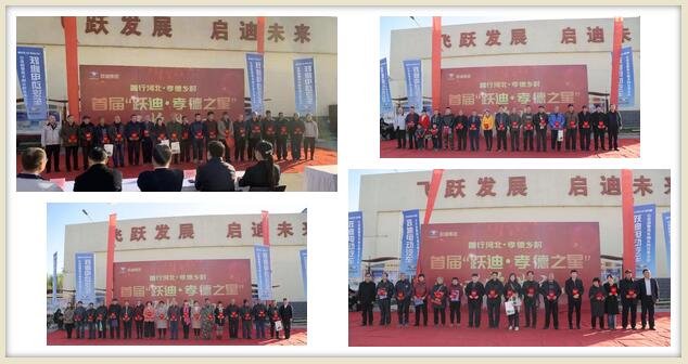 河北省电动汽车产业协会与河北跃迪集团联合发起了“善行河北•孝德乡村”为主题的首届“跃迪•孝德之星”大型公益评选活动。在跃迪用户当中评选出百余位孝敬父母,和睦邻里的先进典型,授予“孝德之星”荣誉称号并全额返还购车款。此次活动,返款金额近300万元。