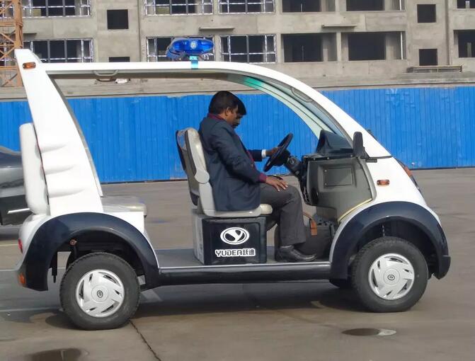 印度客商试乘试驾跃迪警用系列电动巡逻车