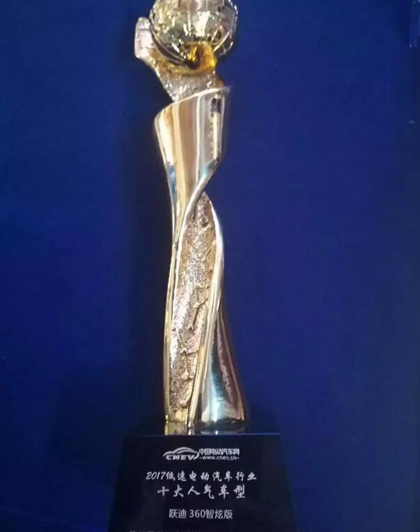 2018年3月14日,山东济南“2018微型电动汽车产业高峰论坛暨第三届微型电动汽车年度颁奖典礼”上,跃迪电动汽车荣获2017低速电动汽车行业“年度十大人气车型”奖项。