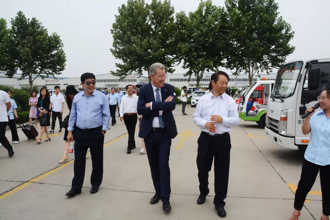 欧盟考察团一行先后参观了集团整体介绍展板、车辆展示区、四大生产车间,详细了解了集团四大基地产业布局、生产经营状况,集团坚定不移”走出去“,借力“一带一路”发展的轨迹,以及集团深耕新能源领域发展,持续构建全产业链发展新生态的战略构想。