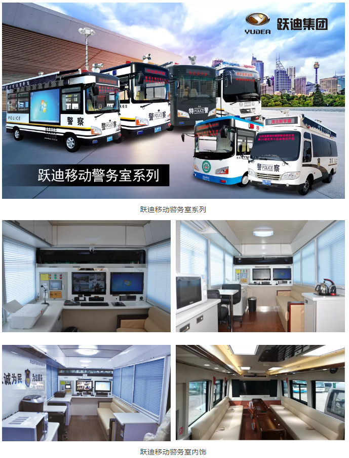 跃迪移动警务室可以实现全面覆盖、突出重点、以快制动、有效控制的功能,将进一步增强防控工作的针对性、有效性和预见性,加大整体防控、重点管控的力度,大限度地将警力摆上街面,实现武装巡逻、动中备勤的常态化,将实现动静结合、相互呼应、整体联动的全时空巡逻防控网络。