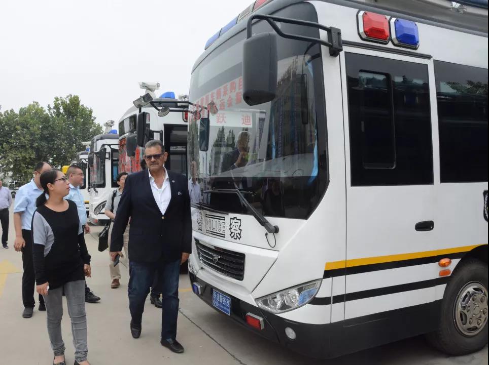 Dr. Eldidi一行在跃迪集团董事长吕洪涛的陪同下,先后参观了跃迪集团四大工艺车间、车辆展示区。参观过程中,跃迪集团董事长吕洪涛向Dr. Eldidi一行详细介绍了集团四大基地产业布局、产品研发、未来发展规划和海内外市场布局等情况。