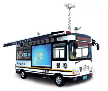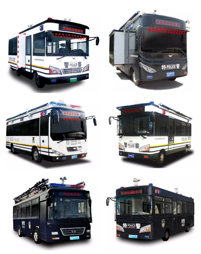 跃迪移动警务室是根据公安系统特点和移动办公的需求,开发设计的一款集治安检查、巡逻防控、服务咨询、日常办公于一体的警务用车。车身开辟有窗口,便于群众咨询求助、办理手续;车内配备有警示宣传系统、警务办公系统、警务通信系统、监控系统及简易生活设备,配备的警务通信系统,可与公安网、视频网互联互通,具备联动化指挥调度、视频督巡查、人像查缉布控、图像4G传输、数据研判比对等功能;可切实承担起服务群众、治安防控、监控巡查、现场执勤、现场办公、维稳处突、法制宣传等职责,满足全天候、全方位移动办公、警务前移、检查、卡口、维护治安等需要。