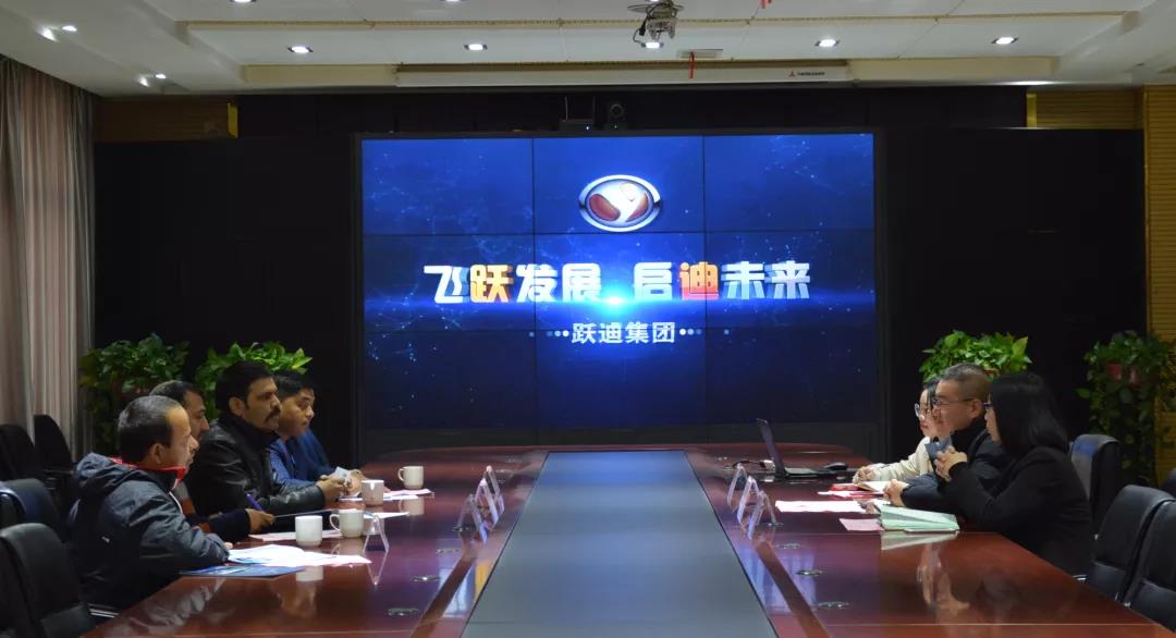 在集团会议室,考察团一行观看了企业介绍片,进一步了解了集团的综合实力以及“走出去”总体情况。随后,双方就跃迪新汽车采购及后期深度合作事项进行商洽,对意向车型进行了深入沟通。