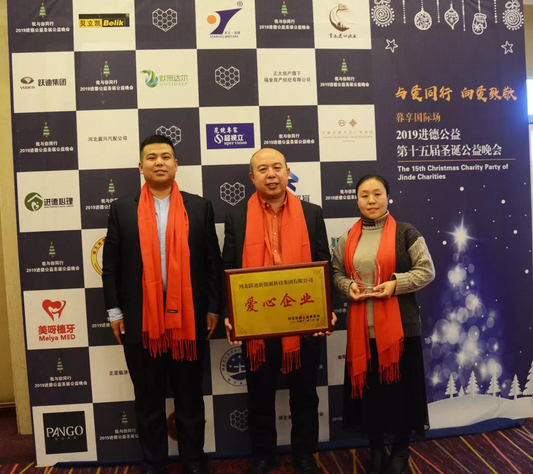 用“爱”铺一条路,用“心”点一盏灯。晚会现场,对一直支持慈善事业的企业和单位进行了表彰,对包括跃迪集团在内的多家企业和爱心团体授予了爱心慈善奖牌。全国政协民宗委副主任马英林主教和省政协民宗委赵彦国副主任等为爱心企业和宗教界爱心团体颁发爱心慈善奖牌。