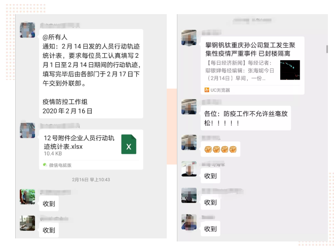 加强疫情宣传力度,设立“疫情防控工作群”,宣传疫情防控知识,树立员工积极防范意识;同时要求各部门每天上报疫情防控工作动态,确保防控工作指令得到有效执行。