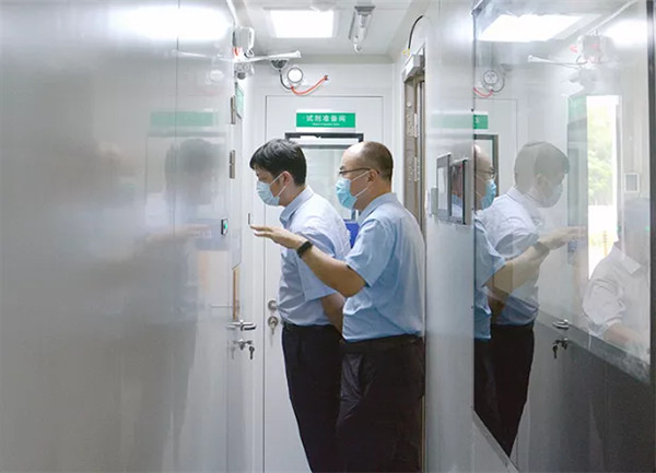 徐翀理事长一行走进跃迪集团生产车间,现场查看企业生产、作业情况,并进入跃迪集团新产品核酸检测方舱认真听取了解了方舱使用功能、作业流程、安全性能等方面的介绍。徐翀理事长一行积极肯定了跃迪医疗系列车的优势和实用性,并对公司在疫情防控和医疗救护方面做出的贡献表示高度赞扬。