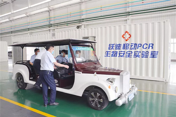 吕洪涛董事长对徐翀理事长一行莅临公司考察表示热烈欢迎,向徐翀理事长介绍了跃迪集团经营产品、发展历程、取得的企业成就以及集团未来发展规划等,同时向徐翀理事长汇报了为了支持疫情防控工作,跃迪集团克服重重困难,加班加点开发生产了防疫工作站和中医药健康服务舱,负压救护车、核酸检测车、移动检测方舱的产品情况,防疫用车在全国多地医疗救护及疫情防控工作中发挥了很大作用。