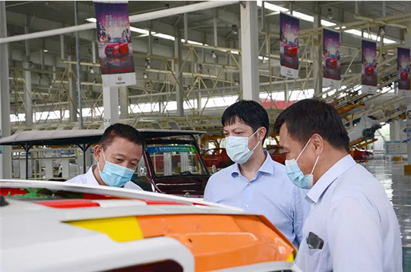 徐翀理事长一行实地考察我公司冲压、焊装、涂装、总装四大工艺生产线,详细了解了机器人自动焊接生产线的情况,对全自动智能化先进科技与新能源汽车生产结合表示充分认可与赞扬。
