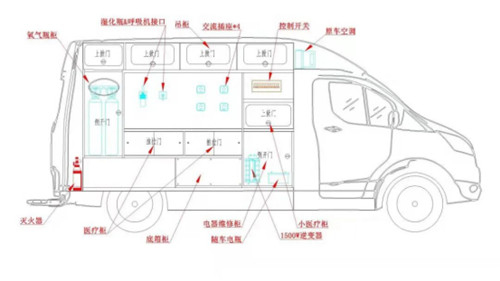 负压监护型救护车通过负压排风净化装置使医疗舱内气压低于外界大气压。将生物安全领域的定向气流和压力梯度技术成功运用,降低了气流死角和涡流指数。医疗舱内设置新风功能,医疗舱内进入空气永远是新鲜空气,无循环空气,使病源体因定向气流和压力梯度而无法在舱内“立足”和“藏身”,可以最大限度地减少医务人员与病人间交叉感染的几率。并且负压排风净化装置将医疗舱内空气进行无害化处理后排出,有效避免更多的人感染,对传染病源起到良好的控制作用。