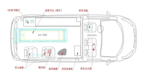负压救护车的空气循环系统,它保证了清洁空气自上而下流动,使得新鲜空气首先经过医护人员再到平躺的患者,最后经过患者头部附近的过滤装置流出车外。装备更齐全的负压救护车还会配备专用的隔离舱,患者平躺在隔离舱内,通过隔离舱的风机进行呼吸。