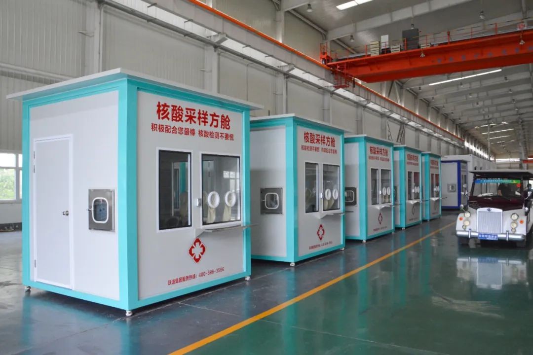 跃迪集团研发的核酸采样方舱,日产200台,内置新风空调系统和排风系统,医护人员进舱采样可脱掉厚重防护服,在保证医护人员的安全的同时,避免发生缺氧、中暑等情况。前窗玻璃配置长橡胶手套、对话系统,使采样方便快速。