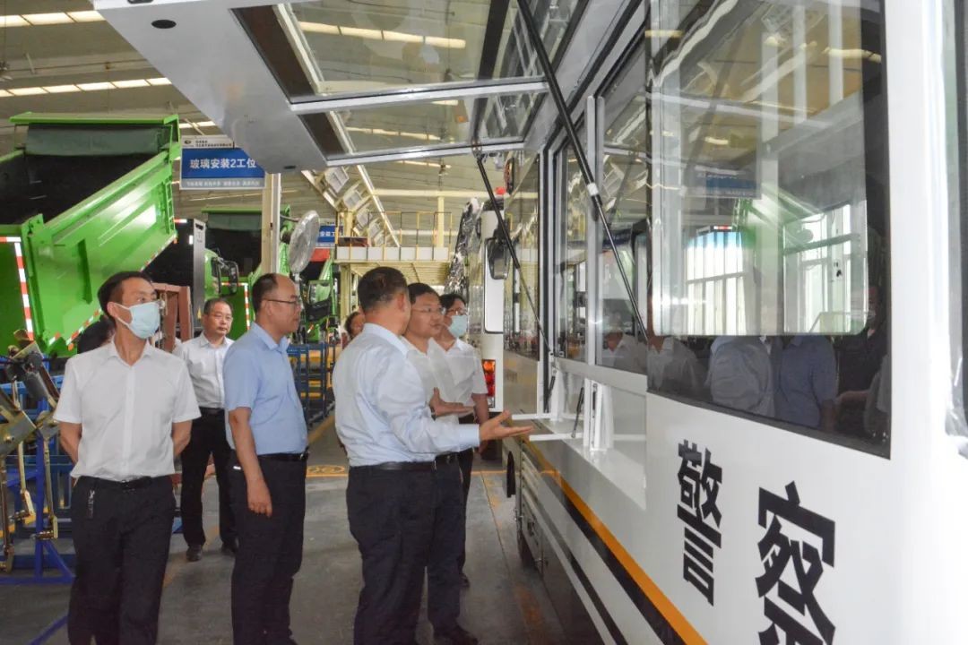 曹铂一行深入企业,了解跃迪集团生产研发及经营状况,并对企业发展及新能源重卡、移动警务室、医疗车等产品的投入使用给予高度认可,并强调企业要重视研发,坚持创新,推动新能源汽车高质量发展。