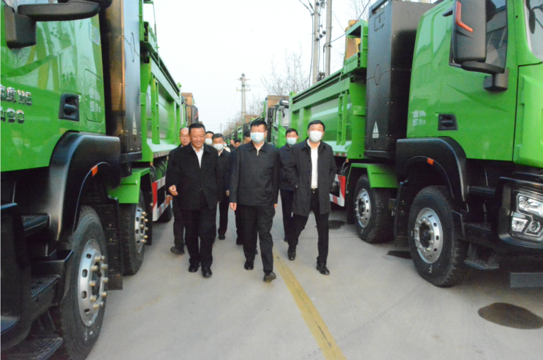 跃迪董事长吕洪涛向安立佳介绍跃迪新能源重卡自卸车