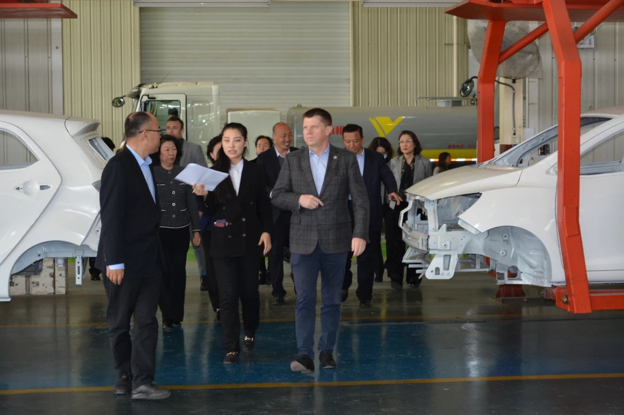 崔清学副总裁向白俄罗斯大使一行介绍了河北跃迪新能源集团的基本情况,随后参观了四大工艺生产车间。参观过程中尤里•先科大使试驾了跃迪新能源汽车。