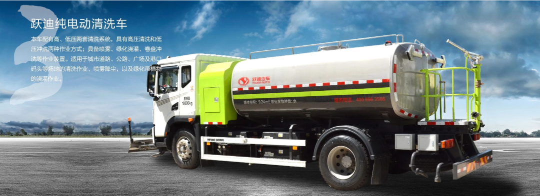 跃迪集团持续发展警用装备外,相继研发出新能源环卫车、新能源自卸车、新能源厢式运输车、医疗车等专用车型。展现了跃迪集团孜孜不倦,立足新能源车型研发的决心。跃迪集团将会砥砺前行,以“倡导低碳生活,享受绿色人生”的企业理念,为建设绿色低碳城市贡献跃迪企业力量。