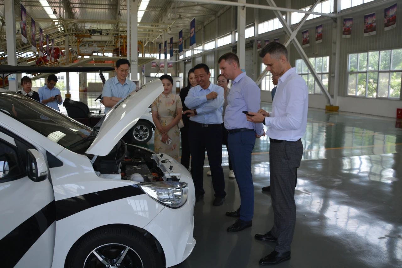 跃迪集团董事长吕洪涛向亚历山大·叶菲莫夫副部长介绍了跃迪集团的四大生产工艺并详细介绍了跃迪新能源车辆的优势。参观过程亚历山大·叶菲莫夫试驾了跃迪新能源汽车并了解了车辆细节,对跃迪新能源汽车给予了高度认可。