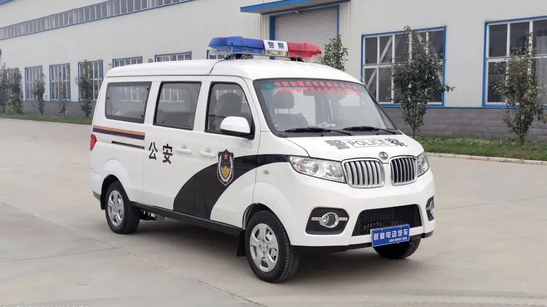 跃迪纯电动警务巡逻车噪音小、机动灵活、节能环保、续驶里程远、承载力强,车身加装长排警灯,增加街面巡查密度,成为了警方机动巡逻、城管执法的好帮手。