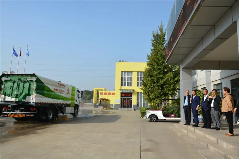 泰国客商一行人参观跃迪纯电动换电式渣土车、跃迪纯电动洗扫车、跃迪纯电动清洗车、跃迪纯电动多功能抑尘车等车型工作模式。