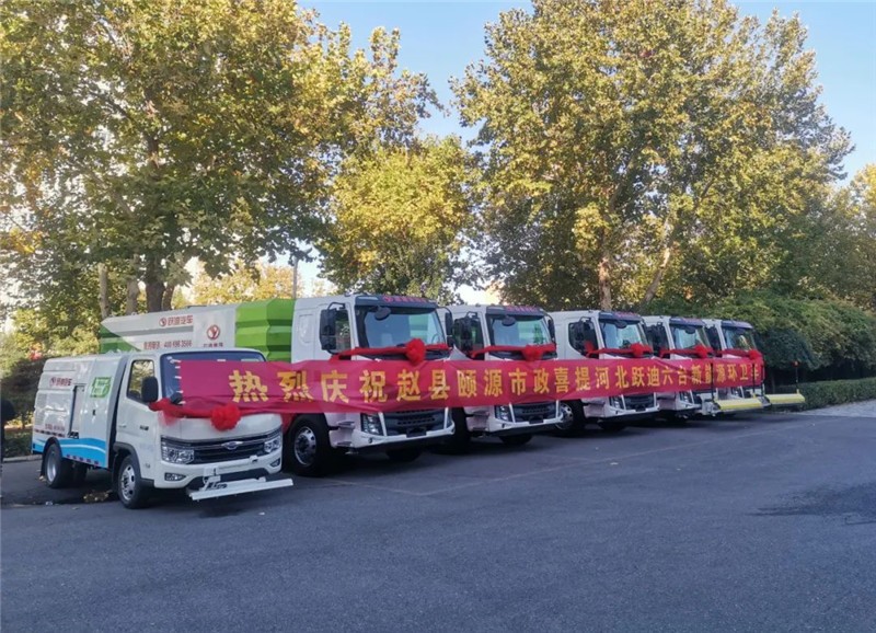 2023年11月6日,跃迪集团生产的新能源环卫车(洗扫车、高压清洗车、路面养护车)整装下线,发往石家庄,跃迪集团愿与石家庄人民携手共创石家庄绿色家园,让石家庄人民出行享受到优美的绿色环境,呼吸新鲜空气。