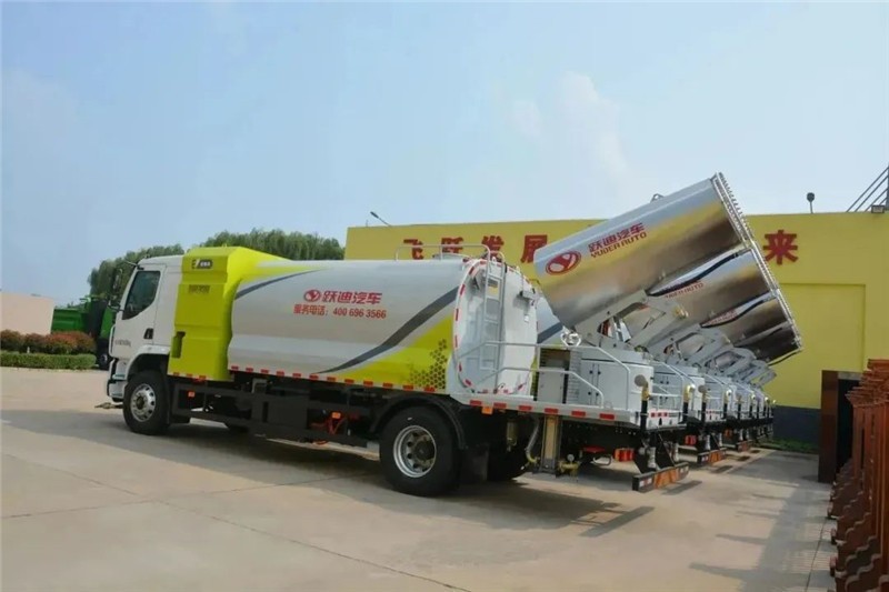 “跃迪”牌新能源多功能抑尘车,所采用的是高压喷雾的方式进行除尘,可减少空气中含尘量,净化空气,同时又能够对路面进行洒水、清洗的多功能新能源环卫专用车辆。