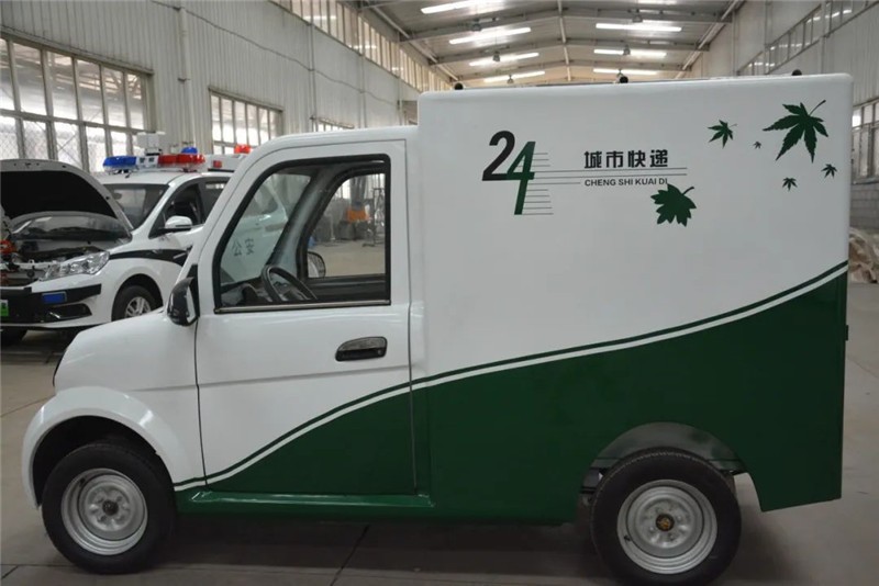 跃迪纯电动邮政快递车前脸采用圆大灯、直列式中网、下长条式雾灯设计,活泼可爱,憨态可掬;宽体车身,舒适性高,驾驶更平稳;灵动轻巧的车身通行性好,适合城市物流配送,降低了城市最后一公里的配送成本。