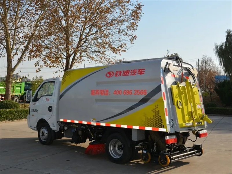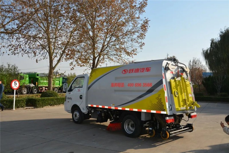 跃迪小型洗扫车, 结合了传统扫路车和高压清洗车的特点,具有路面清洗、路面清扫、污水回收、路缘清洗、路缘石立面洗涮、手持喷枪等功能, 整机功能丰富,运行可靠,作业效率高。
