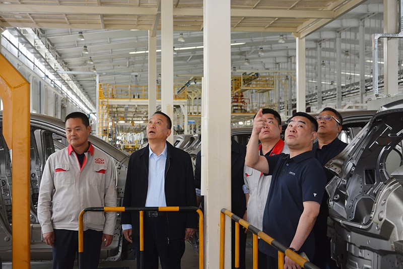 跃迪集团董事长陪同奇瑞集团领导一行,调研生产基地产线
