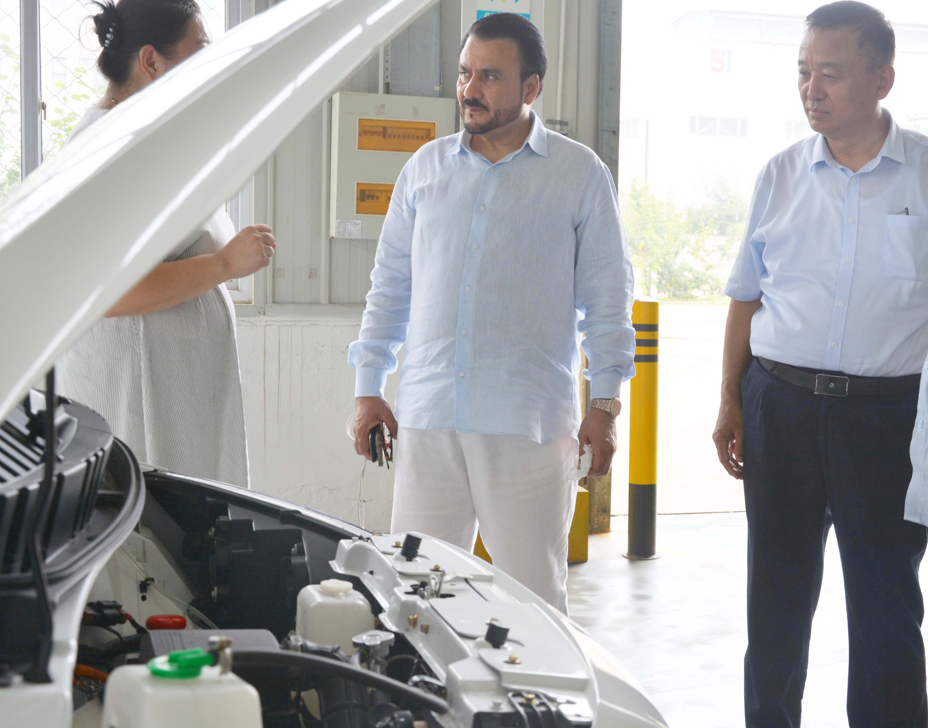 迪拜客商首先来到跃迪生产基地,实地参观了新能源汽车总装车间、研发中心及产品展示区。