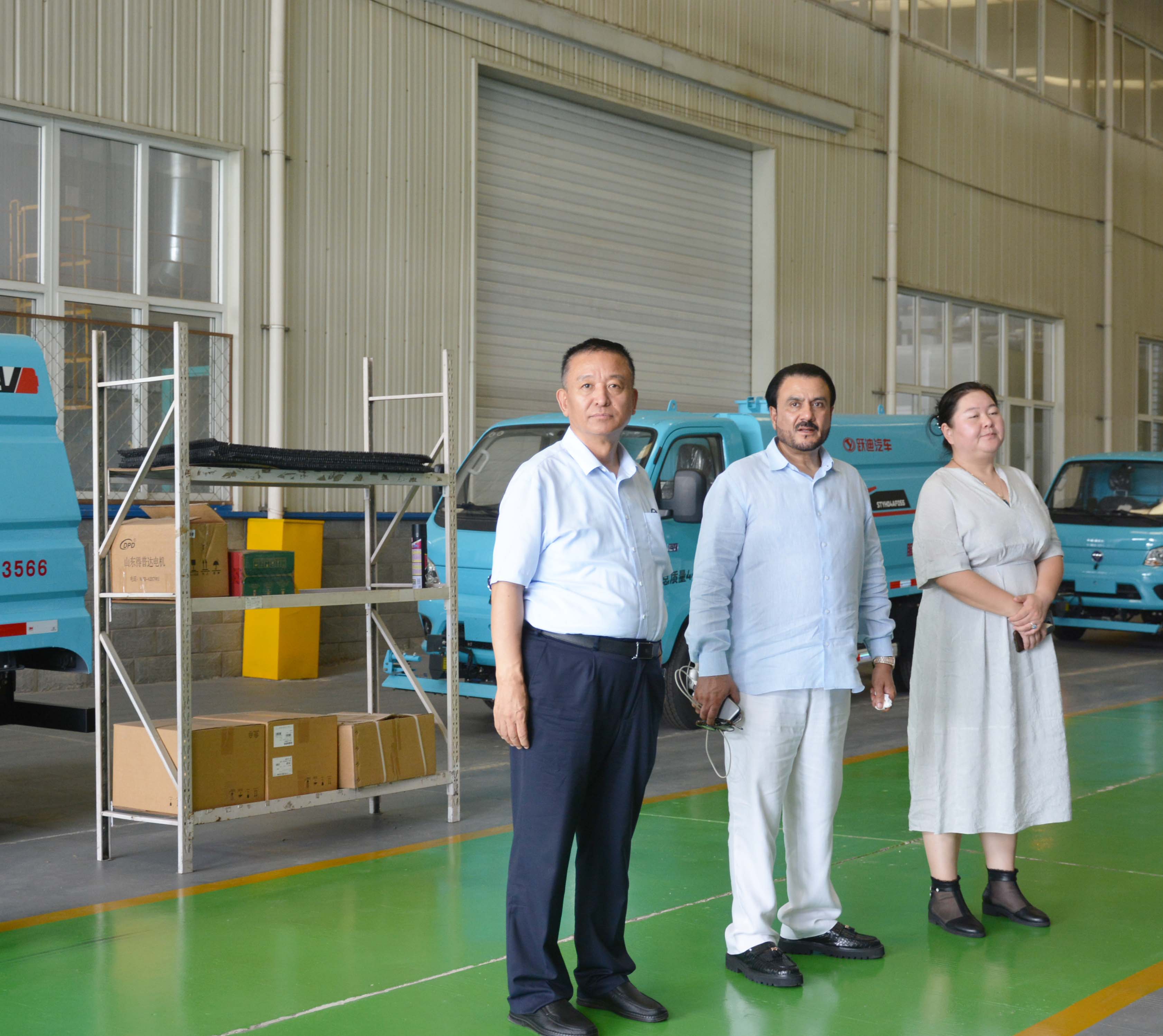 2025年8月15日迪拜客商专程到跃迪调研,在跃迪董事长吕洪涛及公司副总裁崔清学的陪同下,双方围绕新能源汽车、智能出行等领域的合作可能性展开深入交流。