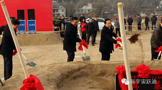 跃迪集团董事长吕洪涛与政府领导共同挥锹铲土,为项目奠基