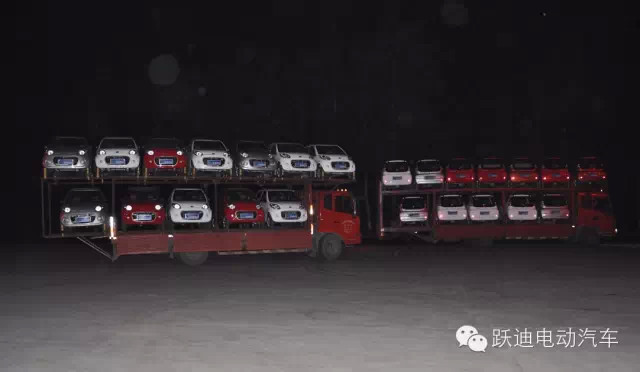 跃迪电动汽车销售市场供不应求,跃迪人连夜加班加点装车,批量发车山东