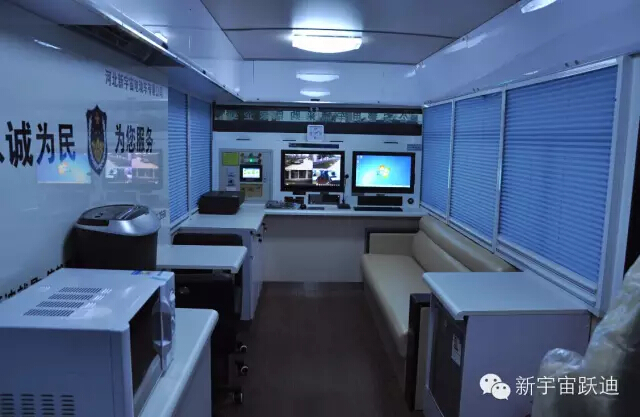 跃迪电动移动警务室是由警方根据公安基层单位的实际需要参与设计、定制,采用专业的客车工艺生产实施而成。该装备应属于电动巡逻警车的一种,也属于移动的办公系统;应用于广场、景区、繁华街道、居民区等人员密集的场所,在治安防控、监控监查、巡逻普查、现场执勤、维稳处突等警务活动中起到重要的作用。民警现场办公的“跃迪流动警务室”为市民群众提供了更多的安全保障与方便。
