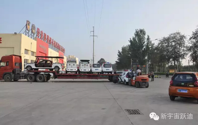 这不历经几天雨天后,跃迪集团河北新宇宙电动车有限公司紧急把发往陕西商洛的跃迪电动移动警务室、多款跃迪电动警用巡逻车、跃迪电动汽车、跃迪电动老爷车批量装车、发车陕西商洛。