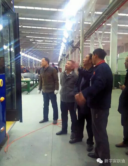 观摩团一行领导先后观看了由跃迪公司生产的电动移动警务室、电动警用巡逻车、电动轿车及电动旅游观光车等新能源汽车,随后到冲压、焊装、涂装、总装四大工艺车间进行实地参观了解新能源汽车的实际生产工艺流程,并对正在生产线上6.5米、10.5米的新能源电动客车、公交车的生产工艺和质量表示肯定。
