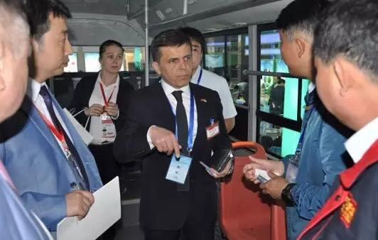 乌克兰日托米尔市市长谢尔盖一行登上跃迪新能源客车进行亲身体验