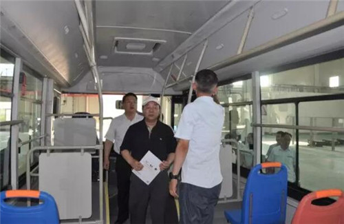 调研中,朱卫东总经济师一行领导深入到公司冲压、焊装、涂装生产车间进行实地参观,详细了解新能源客车的生产工艺及循环水利用问题。在总装车间,朱卫东总经济师一行领导登上陕西跃迪公司自主研发生产的10.5米纯天然气客车进行体验,同时询问了跃迪客车电池的使用寿命、高温天气跃迪客车的安全性和未来5—10年陕西跃迪公司对节能环保的新能源客车技术规划等相关问题,并对陕西跃迪公司始终践行环保理念,自主研发生产的各类智能型、环保型、实用型新能源客车给予充分肯定。