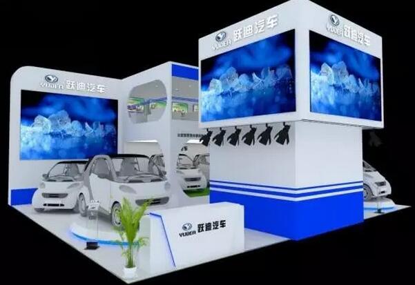 从记者多次参展的观察来看,跃迪电动汽车常用的展台设计语言就是蓝白相间的色彩组合。“蓝色”寓意着时尚和进取的精神品质,再加上精致装修出的高贵气息,带给人的第一感觉就是活力与品位的质感,这也和企业的创新精神和开拓市场的的勇气密不可分。