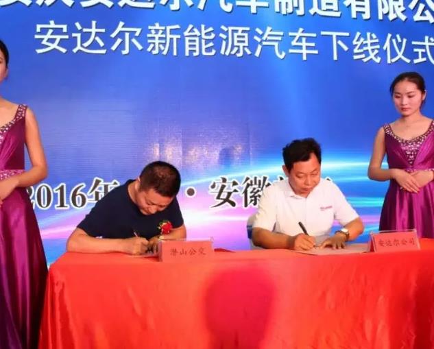 安达尔新能源汽车四款车型的顺利下线得到了各级政府领导及广大用户的肯定与认可。本次活动中,安达尔公司先后与望江县公交公司、桐城市公交公司、潜山县公交公司及枞阳县公交公司签订购车协议,共签约安达尔汽车订单240余辆。活动现场的陆续签约,市场投放的良好反响,充分彰显了安达尔新能源汽车的卓越品质及智能引领。