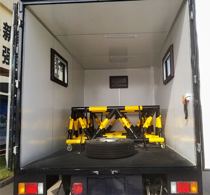 跃迪布障车根据公安、特警系统特点和移动办公的需求,开发设计的具备堵截、盘查和审讯、办公、生活保障等功能的临时机动卡点车辆;在处理突发性刑事及治安事件中,为防止事态扩大,维护社会稳定提供坚实的基础,可满足民警24小时野外执行查缉任务和基本生活的需求,较好的解决了常设治安检查站建设难题和堵截点民警野外露天办公困难等问题。