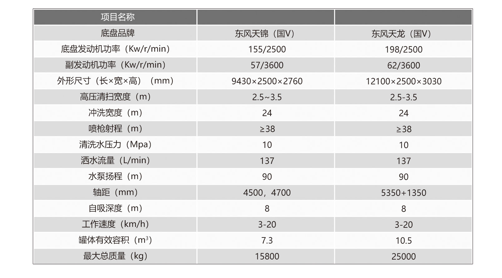 1、双发动机、高、低压双水路系统,副发动机驱动高压水泵,高压清洗速度0-20km/h任意控制。