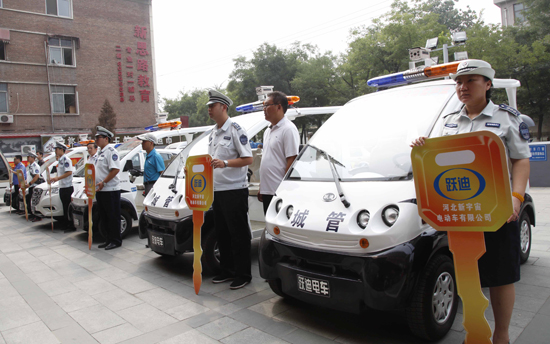 向石家庄城管部门捐赠6辆跃迪新型电动巡逻车