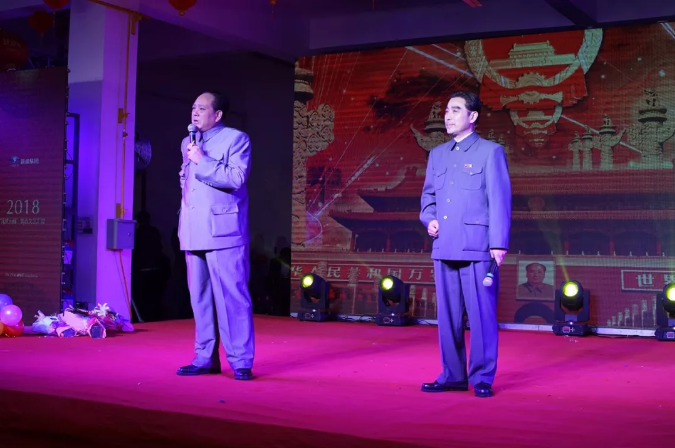 跃迪集团董事长吕洪涛和集团领导在跃迪人欢聚一堂的时刻也即兴表演了节目,为跃迪2018年更加辉煌灿烂的明天加油鼓劲!